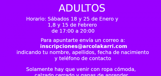 Para inscribirte envía un correo a inscripciones@arcolakarri.com indicando tu nombre, apellidos, fecha de nacimiento y teléfono de contacto.